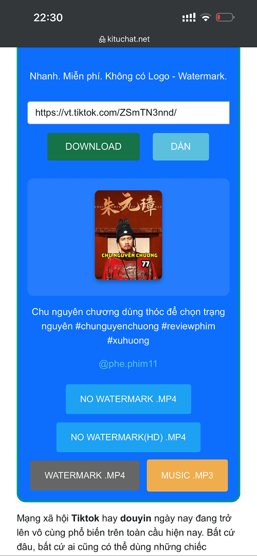 - Dán link → bấm tải